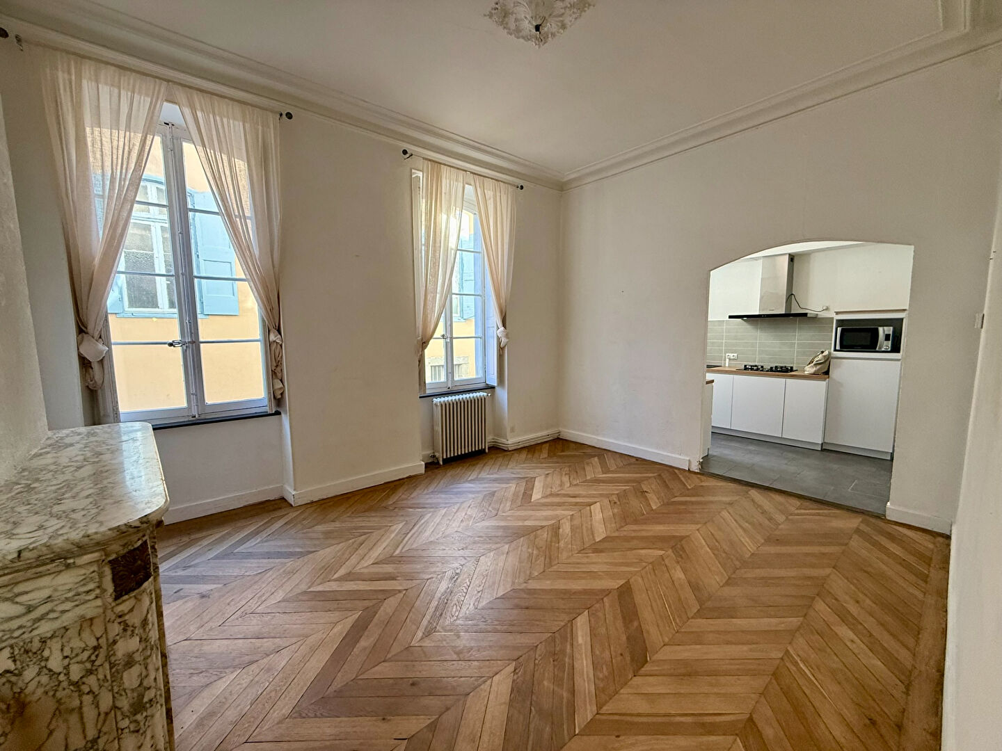 Cet appartement situé au premier étage d'un immeuble de caractère en centre-ville de Carcassonne constitue une acquisition structurée autour de la qualité architecturale et de la fonctionnalité moderne. Traversant Sud/Nord, il profite d'une luminosité équilibrée tout au long de la journée, renforçant le confort d'usage et la valeur d'implantation. D'une superficie d'environ 78 m², le bien a fait l'objet d'une rénovation complète, permettant une cession sans travaux à prévoir. La pièce de vie d'environ 30 m², exposée plein sud, intègre une cuisine partiellement ouverte sur le salon et la salle à manger. Les éléments anciens conservés, tels que le parquet massif, la cheminée, les moulures et la hauteur sous plafond, participent à l'identité du bien et à son positionnement patrimonial. Les espaces jour et nuit sont distincts, offrant une organisation intérieure rationnelle. La partie nuit comprend deux chambres spacieuses, une salle d'eau, un WC indépendant et un espace buanderie. Les rangements intégrés répondent aux exigences de confort et de praticité. Le chauffage au gaz de ville assure une gestion thermique cohérente. L'implantation en coeur de ville renforce le potentiel de valorisation dans le cadre d'un projet immobilier axé sur la stabilité et la valeur à long terme.