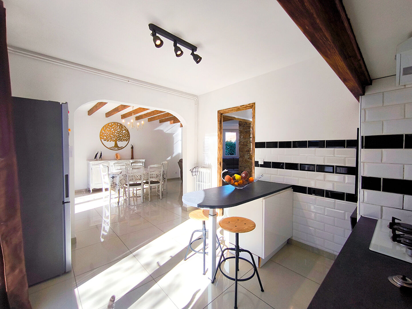Trèbes maison familiale 160 m² cinq chambres piscine chauffée garage et environnement calme - Située à Trèbes, à proximité immédiate des commerces et des services, cette maison 4 faces développe une surface habitable d'environ 160 m² après rénovation complète. L'habitation s'organise autour d'une pièce de vie de plus de 40 m² comprenant salon, salle à manger et cuisine ouverte équipée. La présence d'une cheminée complète cet espace central de la maison. La distribution permet de disposer de cinq chambres au total, dont une en rez-de-chaussée. Cette configuration offre une organisation pratique pour une famille ou pour recevoir. Une salle de bains et deux WC complètent les équipements sanitaires de la maison. Les dépendances apportent des surfaces utiles supplémentaires avec un cellier, une cave ainsi qu'un garage de 50 m² permettant stationnement et stockage. La parcelle accueille également une piscine chauffée intégrée à l'espace extérieur, permettant de profiter pleinement des abords de la maison dans un environnement calme. Ensemble rénové, cohérent et prêt à accompagner un projet immobilier à usage familial. Sabine MORALES (EI) Agent Commercial - Numéro RSAC : 804186021 - CARCASSONNE.